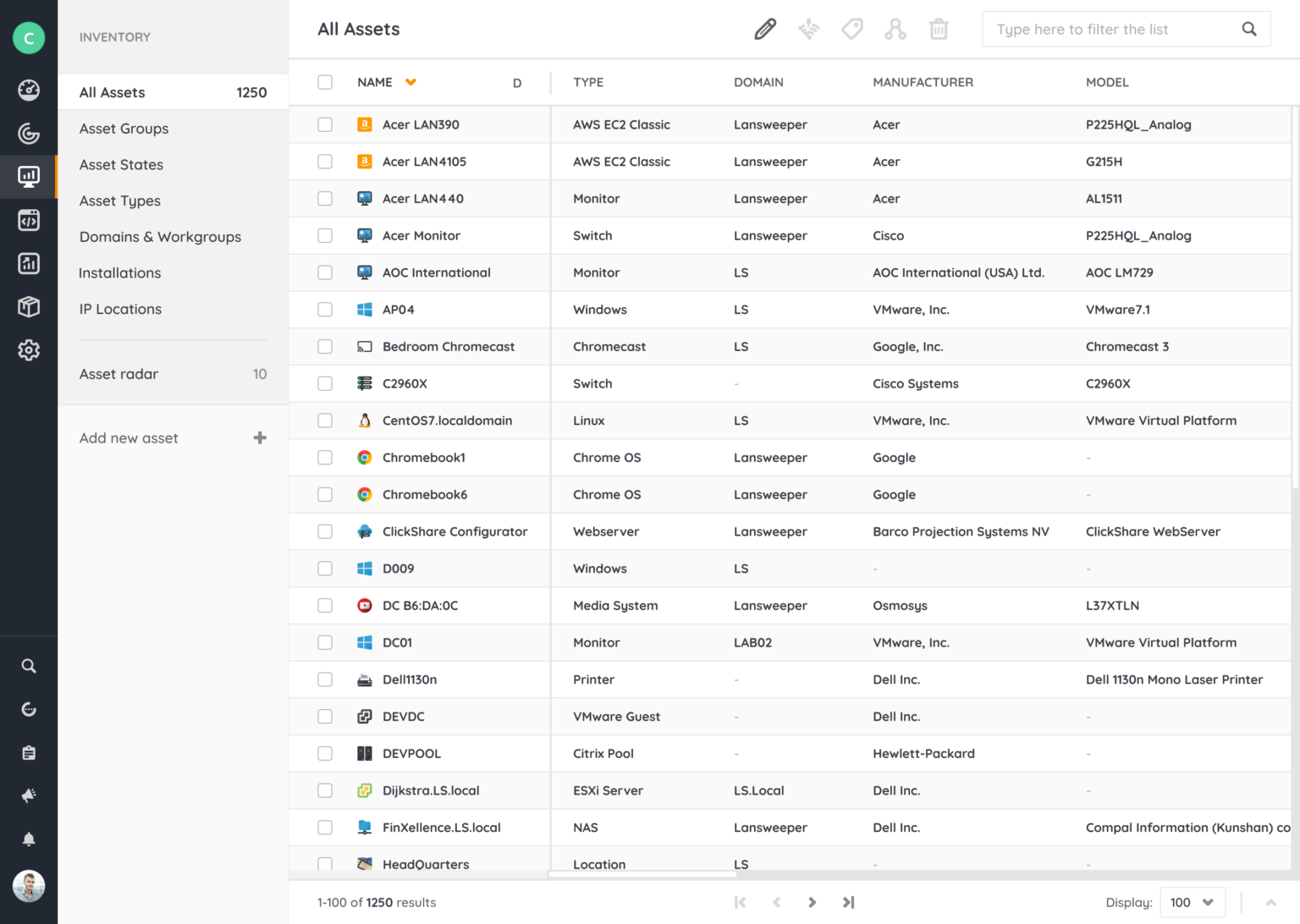 ทุก ๆ รายละเอียดเกี่ยวกับฮาร์ดแวร์ โปรแกรม และผู้ใช้งาน (User) ถูกรวบรวมเอาไว้ในที่เดียว ด้วย โปรแกรมเก็บข้อมูลอุปกรณ์ IT อุปกรณ์ Network ทั้งหมด รุ่นสำหรับองค์กรขนาดใหญ่ Lansweeper Enterprise ที่รวบรวมทุกรายละเอียดเกี่ยวกับสินทรัพย์ด้าน IT ทั้งหมดไว้ที่ศูนย์กลาง ทำให้มองเห็นการกระจายตัวของทรัพยากร IT อย่างชัดเจน รู้ได้ว่ามีทรัพยากรแต่ละประเภทมากน้อยขนาดไหน และทรัพยากรอยู่ตรงไหนบ้าง และใครที่ใช้มันอยู่ สามารถคลิกเข้าไปดูรายละเอียดเชิงลึกแบบละเอียดยิบย่อยของทรัพยากรแต่ละชิ้นได้ตามต้องการ