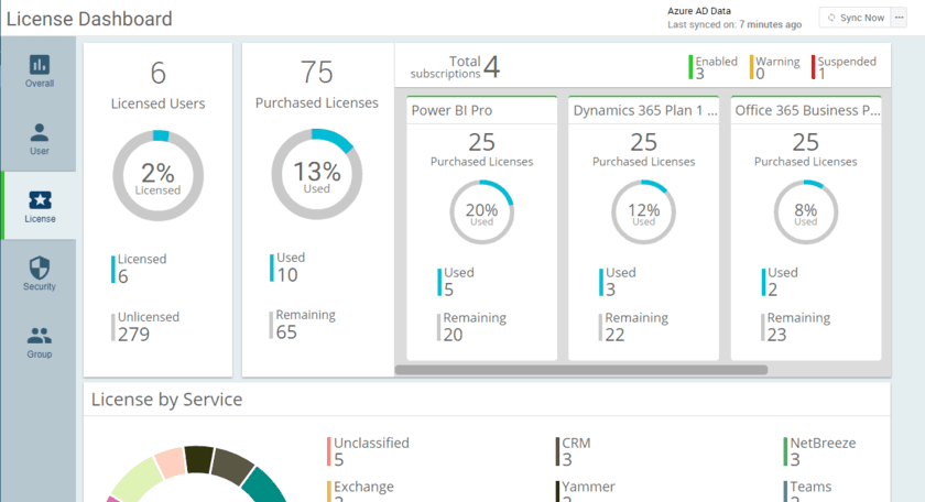 โดย โปรแกรมออกรายงาน แสดง Dashboard การใช้งาน Office 365 รุ่นมาตรฐาน AdminDroid Office 365 Standard สามารถรองรับการออกรายงานสรุป และการจัดแสดง Dashboard รวมถึงการตรวจสอบย้อนกลับการใช้งานของพนักงาน (Audit) ได้ในหลากหลายรูปแบบสำหรับแต่ละบริการในชุดของ Microsoft Office 365 เพื่อให้เกิดการใช้งานได้อย่างมีประสิทธิภาพสูงสุด หลีกเลี่ยงปัญหาที่อาจจะเกิดขึ้น เช่นกล่องจดหมายเต็มความจุ รายงานเรื่องการตั้งรหัสผ่านที่ไม่รัดกุม รายงานเรื่องการแจกจ่าย License ของบริการ Microsoft Office 365 ให้กับพนักงาน เป็นต้น