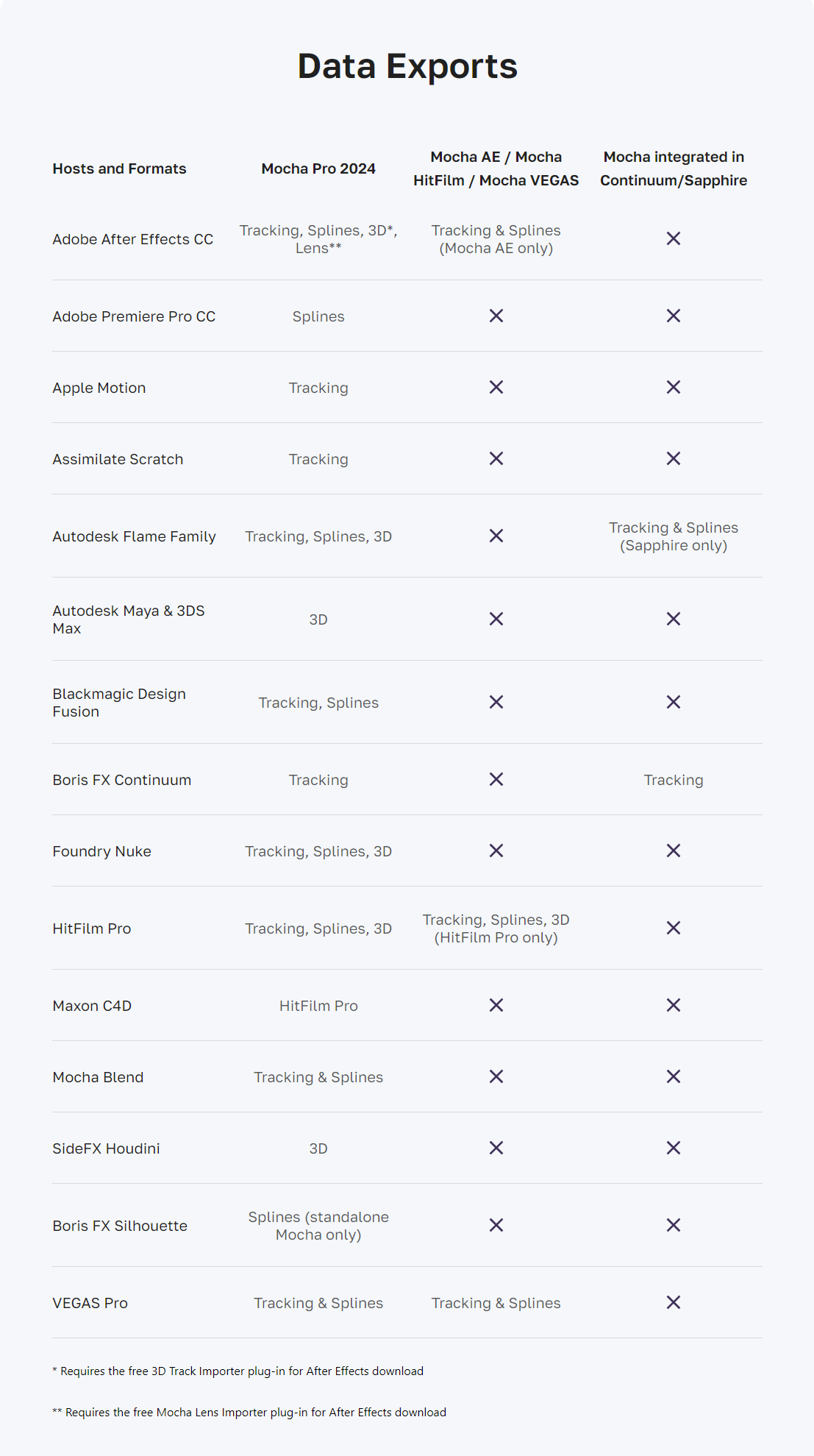 ตารางเปรียบเทียบ โปรแกรมปลั๊กอินแปะภาพ บนวัตถุเคลื่อนไหวในวิดีโอ Boris Mocha Pro