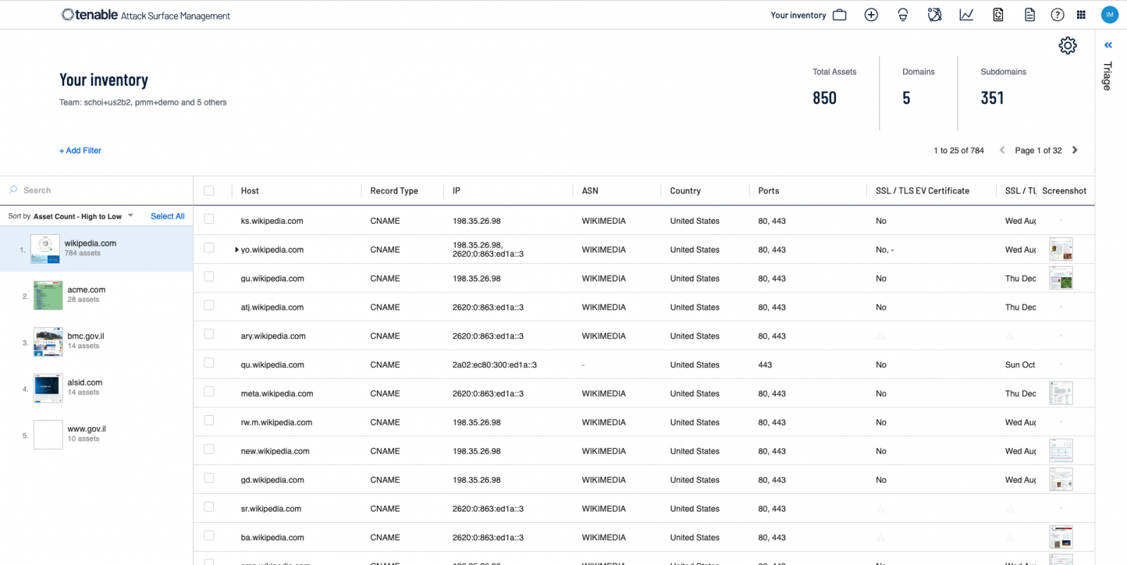 โปรแกรมจัดการพื้นผิวการโจมตีภายนอก Tenable Attack Surface Management ยังให้คุณได้เลือกชื่อโดเมนได้มากเท่าที่คุณต้องการ เพื่อค้นหาและวิเคราะห์ ลดความเสี่ยงทางไซเบอร์และหลีกเลี่ยงภัยคุกคามที่อาจเกิดขึ้น และยังสามารถเปิดเผยพื้นผิวการโจมตีของคู่แข่งปัจจุบัน และคู่แข่งที่มีศักยภาพ เพื่อระบุโอกาสทางกลยุทธ์ รวมทั้งยังสามารถดูทรัพย์สินที่เชื่อมต่ออินเทอร์เน็ตทั้งหมดของบริษัทเป้าหมายในการควบรวมกิจการ เพื่อเป็นส่วนหนึ่งของการตรวจสอบสถานะ และประเมินความเสี่ยงล่วงหน้า