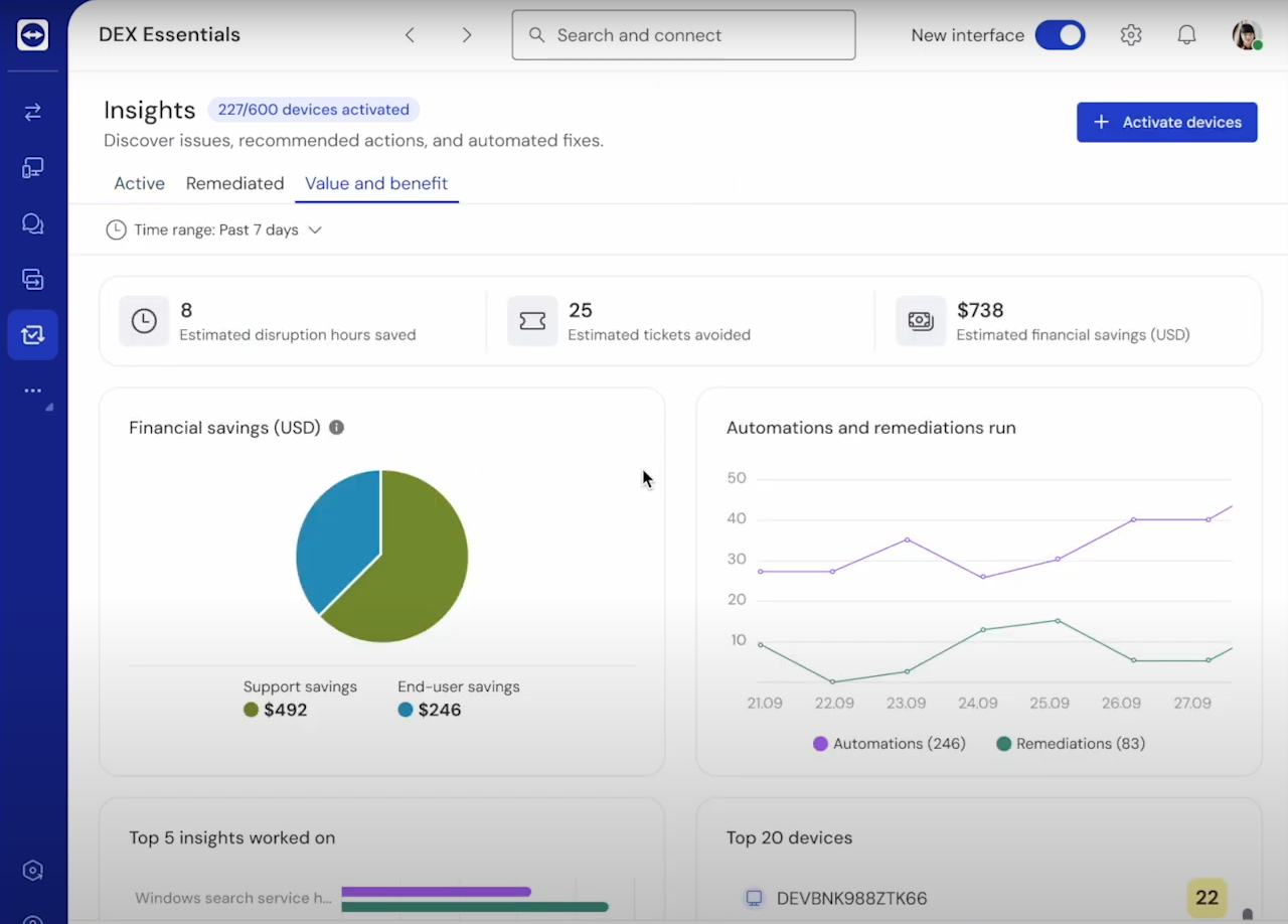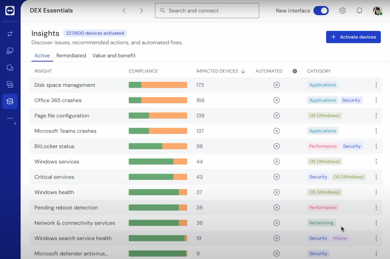 โปรแกรมดูแลระบบคอมพิวเตอร์เรียลไทม์ แก้ปัญหาอัตโนมัติ TeamViewer DEX ประเมินประสบการณ์ของผู้ใช้งานด้วยการให้คะแนน (Experience Score) จากหลายปัจจัย เช่น ความเร็วการบูตเครื่อง, ความเสถียรในการรันโปรแกรม, ความเร็วระบบเครือข่าย โดยคะแนนเหล่านี้ ช่วยให้องค์กรมองเห็นว่าพนักงานกลุ่มใดอาจประสบปัญหา และต้องได้รับความช่วยเหลือก่อนที่ปัญหาจะลุกลามบานปลาย