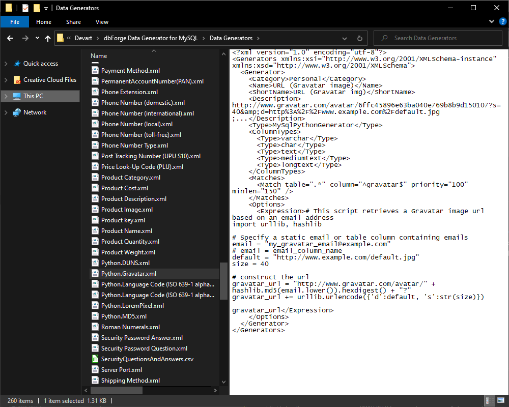 Devart dbForge Data Generator for MySQL Standard มันจัดเป็น โปรแกรมสำหรับผู้พัฒนาซอฟต์แวร์ (Developer Software) คือเครื่องมือที่ช่วยสร้างข้อมูลทดสอบสำหรับฐานข้อมูล MySQL และ MariaDB ได้อย่างรวดเร็ว โดยมุ่งให้ผู้ใช้งานสามารถสร้างข้อมูลจำลองที่มีความสมจริง และมีความใกล้เคียงกับข้อมูลที่ใช้จริงในระบบ ไม่ว่าจะเป็นข้อมูลด้านบุคคล ธุรกิจ สินค้า การทำธุรกรรม หรือข้อมูลทั่วไปตามโครงสร้างของตารางในฐานข้อมูล โปรแกรมมาพร้อมกับชุดตัวสร้างข้อมูลสำเร็จรูปมากกว่า 200 รูปแบบ อาทิ ข้อมูลตัวเลข ข้อความ วันที่ ไปจนถึงข้อมูลเชิงโครงสร้างอย่าง JSON หรือ XML