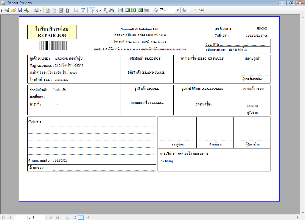 (โปรแกรมศูนย์ซ่อม และ ศูนย์บริการ สำหรับธุรกิจหลากหลาย)