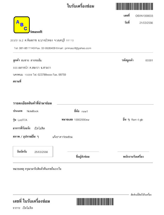 โปรแกรมบริหารงานซ่อม-บริการ และงานขายสินค้า