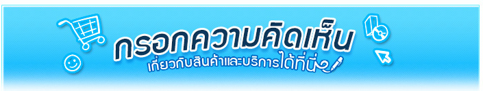คุณสามารถช่วยแสดงความคิดเห็น และ ติชม การให้บริการ โดยการ กรอกความคิดเห็น เกี่ยวกับสินค้า หรือ การให้บริการ ของ ไทยแวร์ชอป ได้ที่นี่ แล้วเราจะนำไปปรับปรุงคุณภาพการให้บริการ ให้ดียิ่งขึ้นต่อไป ความคิดเห็นของคุณมีค่า โปรดแบ่งปัน อย่าเก็บไว้คนเดียว ขอขอบพระคุณล่วงหน้า